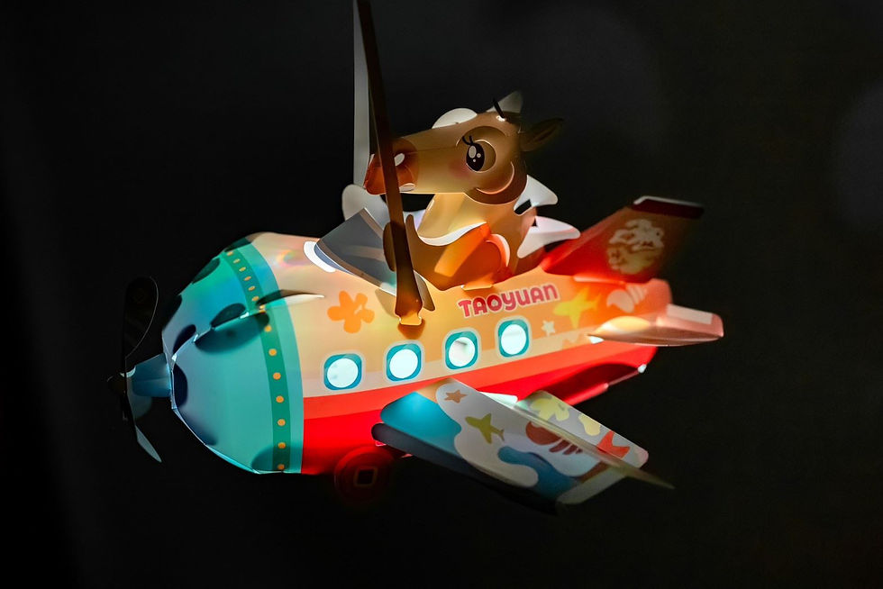 張善政市長進一步表示,小提燈已成為桃園燈會的重要特色之一,今年以「飛機起飛」為設計意象,結合桃園國際機場的國門意涵與馬年主題,象徵城市發展起飛、馬年行大運。